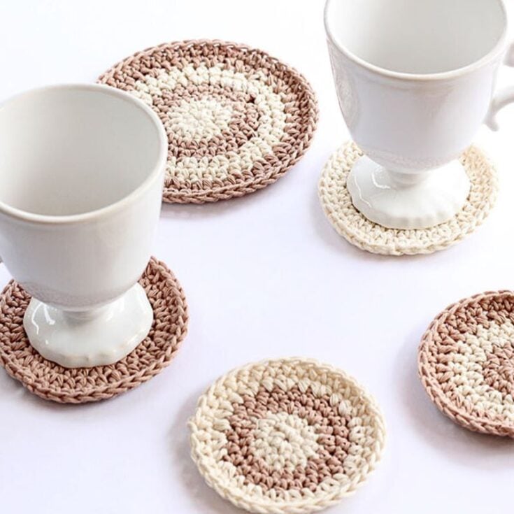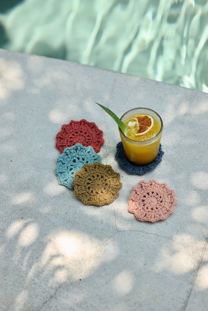 Cotton yarn creates coasters that are absorbent, heat-resistant, and durable.