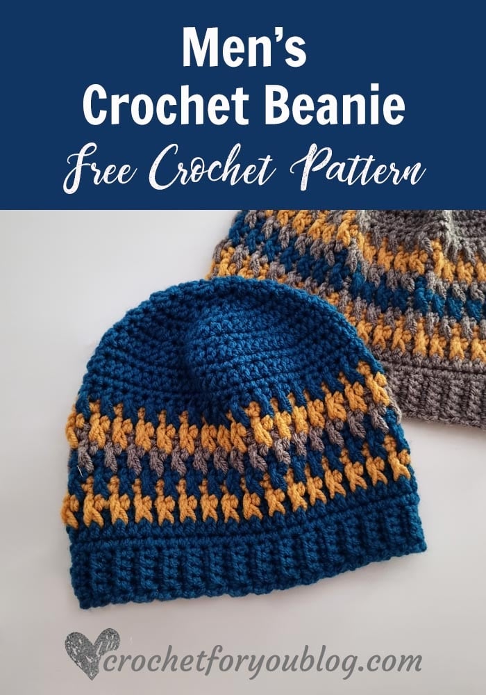 Crochet hat patterns for men—43 free beanies, watch caps, slouch & earflap styles with step-by-step instructions, yarn tips, and size guides.