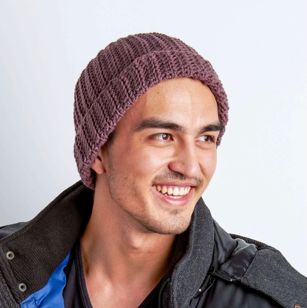 Crochet a classic ribbed men’s hat with Nordic charm.