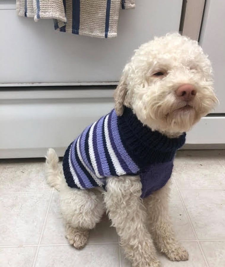 Free Dog Sweater Pattern (Easy Knit Striped Coat)